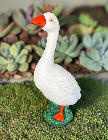 Crafted from solid concrete, this charming goose brings a fun, nostalgic vibe to any porch, garden, or walkway. Its classic design is perfect for dressing up with seasonal outfits, holiday hats, or just letting it shine in its natural cement glory.