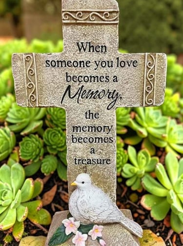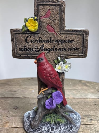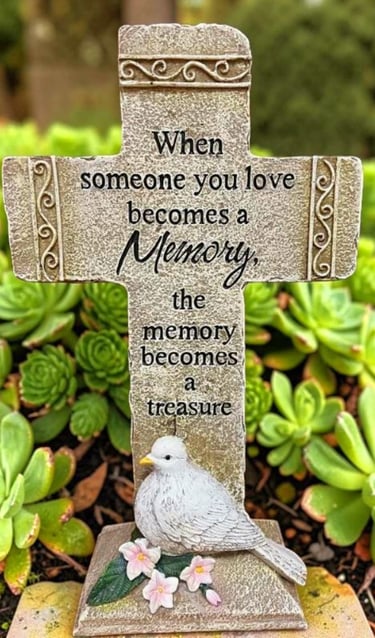 Angels are classic, serene figurines that add a sense of peace and spirituality to a garden or memorial. It typically features intricate details on the wings and flowing robes. They are available in many color combinations. Natural gray or white dry-brushed finish are very popular color combinations.