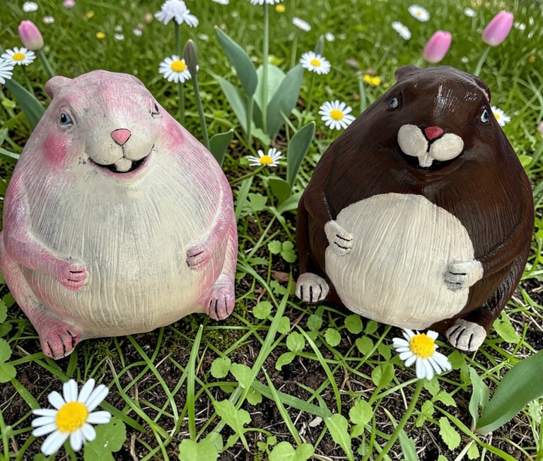 Bring a touch of whimsical charm to your garden with handcrafted concrete statues